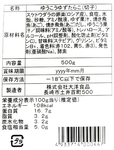 たらこ・《お試し・数量限定》ゆうこうゆずたらこ切子500g㉕