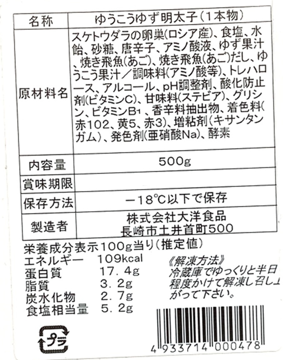 たらこ・《お試し・数量限定》ゆうこうゆずたらこ切子500g